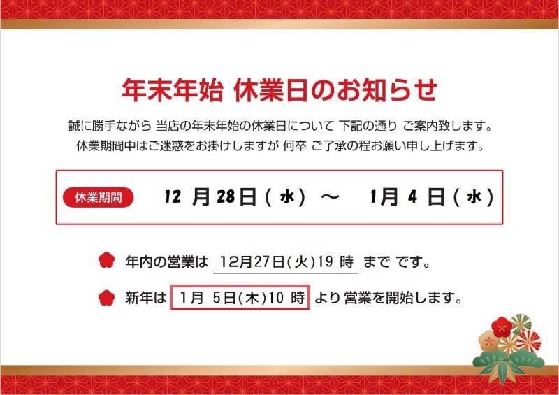 それでは皆様、良い年末年始をお過ごしくださいませ!