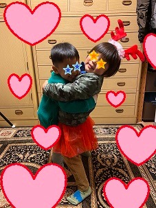 お友達にハグ