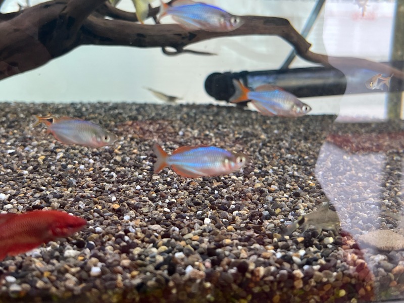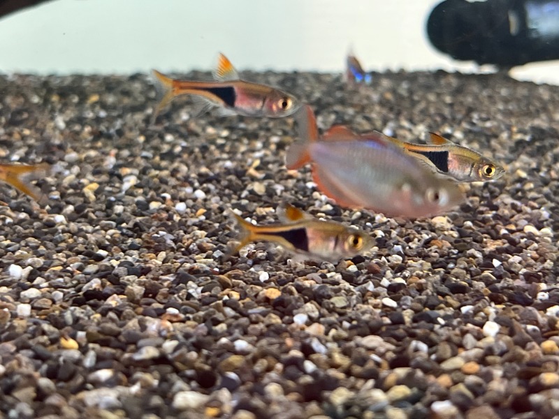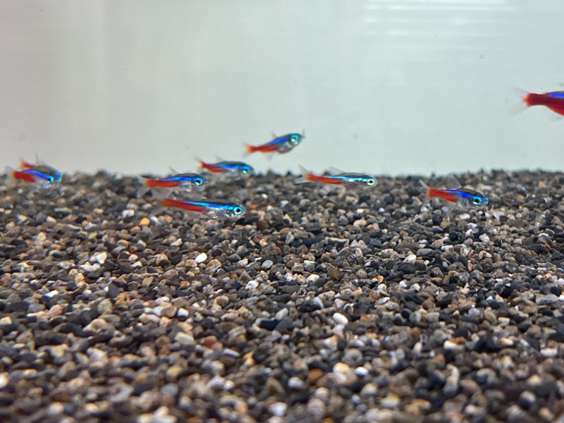 ネオンテトラ10匹とネオンドワーフレインボー10匹とWILDラスボラ・ヘテロモルファ10匹です。