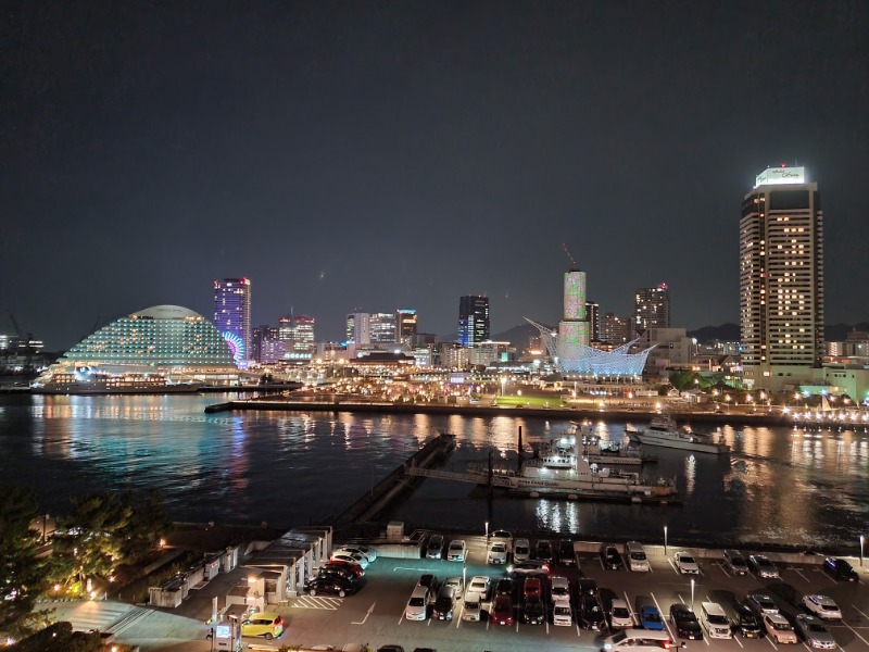 屋上からの夜景もこのように楽しめますし、近くには温泉や、メリケンパーク、ハーバーランド