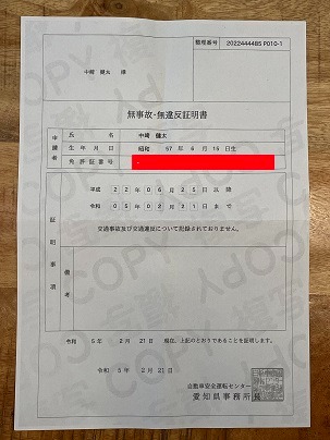 10年以上無事故無違反の証!