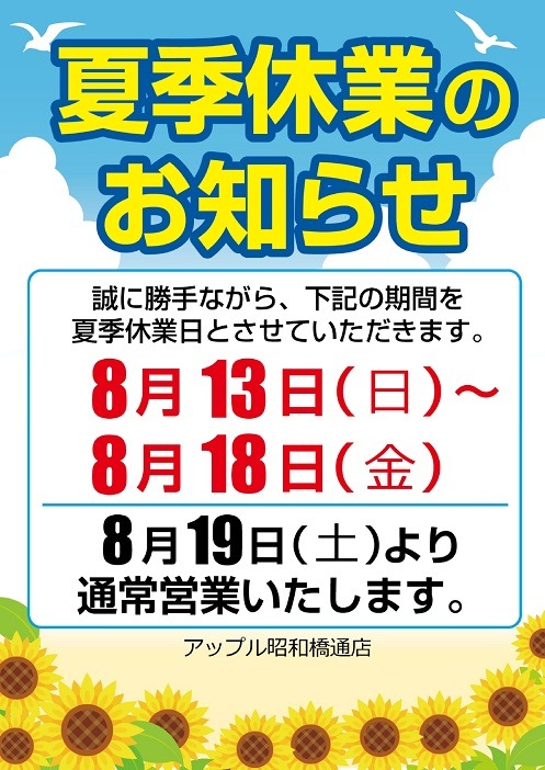 まずは皆様に夏季休業についてのご案内をさせて頂きます!