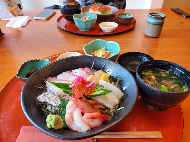 海鮮丼といくら丼、そして活イカの姿造です!🦑