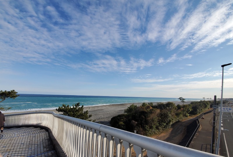歩道橋を渡り、海に向かいます。