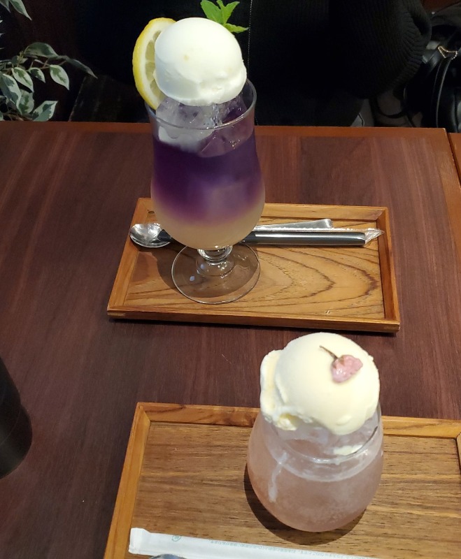 そして春限定のメニュー、桜フロート🌸(手前)を注文しました。