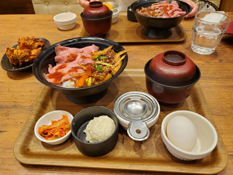 「プルコギ&ローストビーフ」、「ステーキ&ローストビーフ」に「ザンギ」を注文