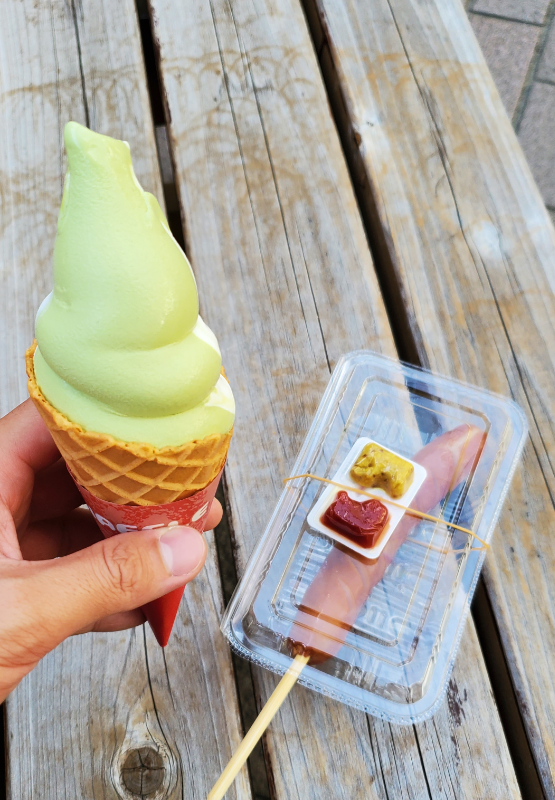 ロック・ガーデンひちそうではソフトクリーム🍦とフランクフルトを食べました。
