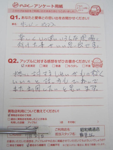 お車のご相談・ 査定だけでもOK! カンタン 入力 30秒 アップルがブランド買取始めました! お電話でも受付中! 受付時間10:00 ~ 19:00 052-363-7811 お車のご相談・ 査定だけでもOK! カンタン 入力 30秒 アップルがブランド買取始めました! お電話でも受付中! 受付時間10:00 ~ 19:00 052-363-7811 アップルがブランド買取始めました! お電話でも受付中! 受付時間10:00 ~ 19:00 052-363-7811 店舗情報 在庫車 スタッフ紹介 ブログ お客様の声 キャンペーン 無料査定 click お客様の声 ご記入日: 2013/07/27 匿名希望サンバー様 お客に対する姿勢がものすごくいいのと話し方も丁寧でまた利用したいと思います。 前へ 次へ お客様の声一覧を見る