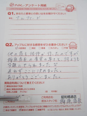 お車のご相談・ 査定だけでもOK! カンタン 入力 30秒 アップルがブランド買取始めました! お電話でも受付中! 受付時間10:00 ~ 19:00 052-363-7811 お車のご相談・ 査定だけでもOK! カンタン 入力 30秒 アップルがブランド買取始めました! お電話でも受付中! 受付時間10:00 ~ 19:00 052-363-7811 アップルがブランド買取始めました! お電話でも受付中! 受付時間10:00 ~ 19:00 052-363-7811 店舗情報 在庫車 スタッフ紹介 ブログ お客様の声 キャンペーン 無料査定 click お客様の声 ご記入日: 2013/09/04 匿名希望アルファード様 他の店も何件か行ったのですが、梅原店長の査定の早さと、何よりも笑顔にやられました^^迷わずここに決めました。ありがとうございました。 前へ 次へ お客様の声一覧を見る