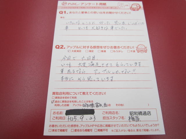 お車のご相談・ 査定だけでもOK! カンタン 入力 30秒 アップルがブランド買取始めました! お電話でも受付中! 受付時間10:00 ~ 19:00 052-363-7811 お車のご相談・ 査定だけでもOK! カンタン 入力 30秒 アップルがブランド買取始めました! お電話でも受付中! 受付時間10:00 ~ 19:00 052-363-7811 アップルがブランド買取始めました! お電話でも受付中! 受付時間10:00 ~ 19:00 052-363-7811 店舗情報 在庫車 スタッフ紹介 ブログ お客様の声 キャンペーン 無料査定 click お客様の声 ご記入日: 2013/12/03 匿名希望様 今回で六回目。いつも大変満足させてもらっています。車売るならアップルしかない!!本当にそう思っています。 前へ 次へ お客様の声一覧を見る