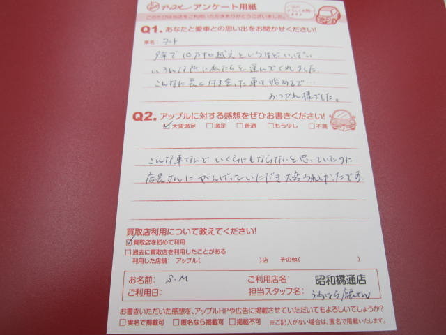 お車のご相談・ 査定だけでもOK! カンタン 入力 30秒 アップルがブランド買取始めました! お電話でも受付中! 受付時間10:00 ~ 19:00 052-363-7811 お車のご相談・ 査定だけでもOK! カンタン 入力 30秒 アップルがブランド買取始めました! お電話でも受付中! 受付時間10:00 ~ 19:00 052-363-7811 アップルがブランド買取始めました! お電話でも受付中! 受付時間10:00 ~ 19:00 052-363-7811 店舗情報 在庫車 スタッフ紹介 ブログ お客様の声 キャンペーン 無料査定 click お客様の声 ご記入日: 2013/12/03 S・M様 こんな車なんでいくらにもならないと思っていたのに店長さんにがんばっていただき大変うれしかったです。 前へ 次へ お客様の声一覧を見る