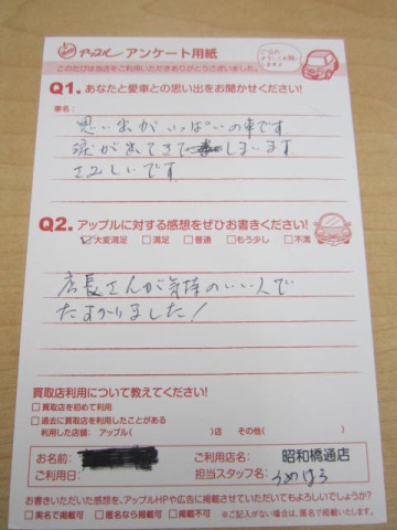 お車のご相談・ 査定だけでもOK! カンタン 入力 30秒 アップルがブランド買取始めました! お電話でも受付中! 受付時間10:00 ~ 19:00 052-363-7811 お車のご相談・ 査定だけでもOK! カンタン 入力 30秒 アップルがブランド買取始めました! お電話でも受付中! 受付時間10:00 ~ 19:00 052-363-7811 アップルがブランド買取始めました! お電話でも受付中! 受付時間10:00 ~ 19:00 052-363-7811 店舗情報 在庫車 スタッフ紹介 ブログ お客様の声 キャンペーン 無料査定 click お客様の声 ご記入日: 2014/01/07 匿名希望様 店長さんが気持のいい人でたすかりました! 前へ 次へ お客様の声一覧を見る