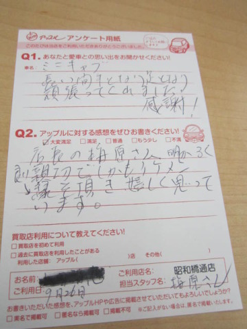 お車のご相談・ 査定だけでもOK! カンタン 入力 30秒 アップルがブランド買取始めました! お電話でも受付中! 受付時間10:00 ~ 19:00 052-363-7811 お車のご相談・ 査定だけでもOK! カンタン 入力 30秒 アップルがブランド買取始めました! お電話でも受付中! 受付時間10:00 ~ 19:00 052-363-7811 アップルがブランド買取始めました! お電話でも受付中! 受付時間10:00 ~ 19:00 052-363-7811 店舗情報 在庫車 スタッフ紹介 ブログ お客様の声 キャンペーン 無料査定 click お客様の声 ご記入日: 2013/09/26 匿名希望ミニキャブ様 店長の梅原さん、明るく親切でしかもイケメン、良い縁を頂き嬉しく思っています。 前へ 次へ お客様の声一覧を見る