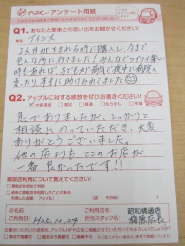 お車のご相談・ 査定だけでもOK! カンタン 入力 30秒 アップルがブランド買取始めました! お電話でも受付中! 受付時間10:00 ~ 19:00 052-363-7811 お車のご相談・ 査定だけでもOK! カンタン 入力 30秒 アップルがブランド買取始めました! お電話でも受付中! 受付時間10:00 ~ 19:00 052-363-7811 アップルがブランド買取始めました! お電話でも受付中! 受付時間10:00 ~ 19:00 052-363-7811 店舗情報 在庫車 スタッフ紹介 ブログ お客様の声 キャンペーン 無料査定 click お客様の声 ご記入日: 2013/12/24 匿名希望アイシス様 急でありましたが、しっかりと相談にのっていただき、大変ありがとうございました。他の店よりもここのお店が一番良かったです!! 前へ 次へ お客様の声一覧を見る