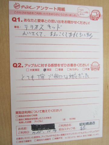 お車のご相談・ 査定だけでもOK! カンタン 入力 30秒 アップルがブランド買取始めました! お電話でも受付中! 受付時間10:00 ~ 19:00 052-363-7811 お車のご相談・ 査定だけでもOK! カンタン 入力 30秒 アップルがブランド買取始めました! お電話でも受付中! 受付時間10:00 ~ 19:00 052-363-7811 アップルがブランド買取始めました! お電話でも受付中! 受付時間10:00 ~ 19:00 052-363-7811 店舗情報 在庫車 スタッフ紹介 ブログ お客様の声 キャンペーン 無料査定 click お客様の声 ご記入日: 2013/10/14 匿名希望テリオスキッド様 とても丁寧で親切な対応だった。 前へ 次へ お客様の声一覧を見る