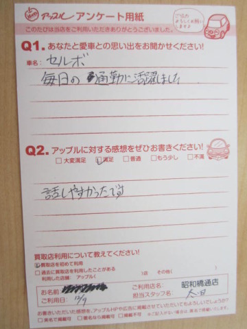 お車のご相談・ 査定だけでもOK! カンタン 入力 30秒 アップルがブランド買取始めました! お電話でも受付中! 受付時間10:00 ~ 19:00 052-363-7811 お車のご相談・ 査定だけでもOK! カンタン 入力 30秒 アップルがブランド買取始めました! お電話でも受付中! 受付時間10:00 ~ 19:00 052-363-7811 アップルがブランド買取始めました! お電話でも受付中! 受付時間10:00 ~ 19:00 052-363-7811 店舗情報 在庫車 スタッフ紹介 ブログ お客様の声 キャンペーン 無料査定 click お客様の声 ご記入日: 2013/12/09 匿名希望セルボ様 話しやすかったです。 前へ 次へ お客様の声一覧を見る