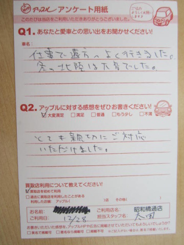 お車のご相談・ 査定だけでもOK! カンタン 入力 30秒 アップルがブランド買取始めました! お電話でも受付中! 受付時間10:00 ~ 19:00 052-363-7811 お車のご相談・ 査定だけでもOK! カンタン 入力 30秒 アップルがブランド買取始めました! お電話でも受付中! 受付時間10:00 ~ 19:00 052-363-7811 アップルがブランド買取始めました! お電話でも受付中! 受付時間10:00 ~ 19:00 052-363-7811 店舗情報 在庫車 スタッフ紹介 ブログ お客様の声 キャンペーン 無料査定 click お客様の声 ご記入日: 2013/12/28 匿名希望様 とても親切にご対応いただけました。 前へ 次へ お客様の声一覧を見る