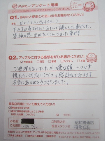 お車のご相談・ 査定だけでもOK! カンタン 入力 30秒 アップルがブランド買取始めました! お電話でも受付中! 受付時間10:00 ~ 19:00 052-363-7811 お車のご相談・ 査定だけでもOK! カンタン 入力 30秒 アップルがブランド買取始めました! お電話でも受付中! 受付時間10:00 ~ 19:00 052-363-7811 アップルがブランド買取始めました! お電話でも受付中! 受付時間10:00 ~ 19:00 052-363-7811 店舗情報 在庫車 スタッフ紹介 ブログ お客様の声 キャンペーン 無料査定 click お客様の声 ご記入日: 2013/11/24 匿名希望セレナ様 ご無理を言いましたが、嫌な顔、一つせず親切に対応して下さり感謝しております。本当にありがとうございました。 前へ 次へ お客様の声一覧を見る