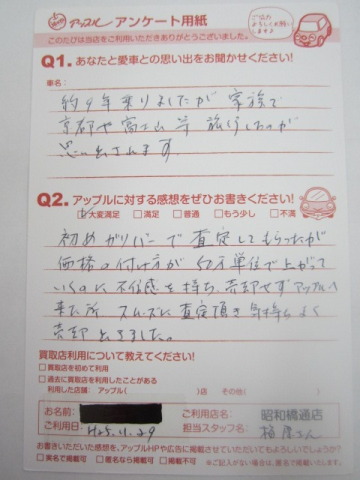 お車のご相談・ 査定だけでもOK! カンタン 入力 30秒 アップルがブランド買取始めました! お電話でも受付中! 受付時間10:00 ~ 19:00 052-363-7811 お車のご相談・ 査定だけでもOK! カンタン 入力 30秒 アップルがブランド買取始めました! お電話でも受付中! 受付時間10:00 ~ 19:00 052-363-7811 アップルがブランド買取始めました! お電話でも受付中! 受付時間10:00 ~ 19:00 052-363-7811 店舗情報 在庫車 スタッフ紹介 ブログ お客様の声 キャンペーン 無料査定 click お客様の声 ご記入日: 2013/11/29 匿名希望様 初めガリバーで査定してもらったが価格の付け方が50万単位で上がっていくのに不信感をもち、売却せずアップルへ来た所、スムーズに査定して頂き、気持ちよく売却しました。 前へ 次へ お客様の声一覧を見る
