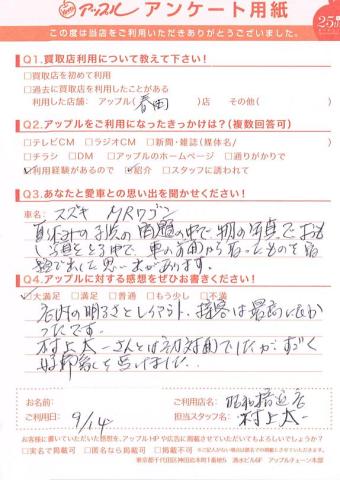 お車のご相談・ 査定だけでもOK! カンタン 入力 30秒 アップルがブランド買取始めました! お電話でも受付中! 受付時間10:00 ~ 19:00 052-363-7811 お車のご相談・ 査定だけでもOK! カンタン 入力 30秒 アップルがブランド買取始めました! お電話でも受付中! 受付時間10:00 ~ 19:00 052-363-7811 アップルがブランド買取始めました! お電話でも受付中! 受付時間10:00 ~ 19:00 052-363-7811 店舗情報 在庫車 スタッフ紹介 ブログ お客様の声 キャンペーン 無料査定 click お客様の声 ご記入日: 2014/09/14 匿名希望MRワゴン様 店内の明るさとレイアウト、接客は最高に良かったです。村上太一さんとは初対面でしたが、すごく好印象を受けました。 前へ 次へ お客様の声一覧を見る