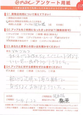 お車のご相談・ 査定だけでもOK! カンタン 入力 30秒 アップルがブランド買取始めました! お電話でも受付中! 受付時間10:00 ~ 19:00 052-363-7811 お車のご相談・ 査定だけでもOK! カンタン 入力 30秒 アップルがブランド買取始めました! お電話でも受付中! 受付時間10:00 ~ 19:00 052-363-7811 アップルがブランド買取始めました! お電話でも受付中! 受付時間10:00 ~ 19:00 052-363-7811 店舗情報 在庫車 スタッフ紹介 ブログ お客様の声 キャンペーン 無料査定 click お客様の声 ご記入日: 2014/06/22 匿名希望ゴルフ様 親切な説明と丁寧な接客で気持ち良くお取引できました。 前へ 次へ お客様の声一覧を見る