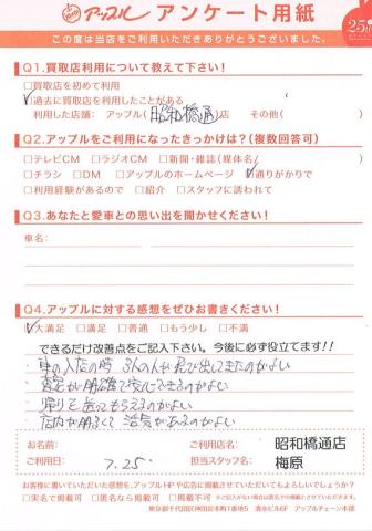 お車のご相談・ 査定だけでもOK! カンタン 入力 30秒 アップルがブランド買取始めました! お電話でも受付中! 受付時間10:00 ~ 19:00 052-363-7811 お車のご相談・ 査定だけでもOK! カンタン 入力 30秒 アップルがブランド買取始めました! お電話でも受付中! 受付時間10:00 ~ 19:00 052-363-7811 アップルがブランド買取始めました! お電話でも受付中! 受付時間10:00 ~ 19:00 052-363-7811 店舗情報 在庫車 スタッフ紹介 ブログ お客様の声 キャンペーン 無料査定 click お客様の声 ご記入日: 2014/07/25 匿名希望様 ・入店の時3人の人が飛び出してきたのが良い・査定が明確で安心できるのがよい・帰りを送ってもらえるのがよい・店内が明るくて活気があるのがよい 前へ 次へ お客様の声一覧を見る