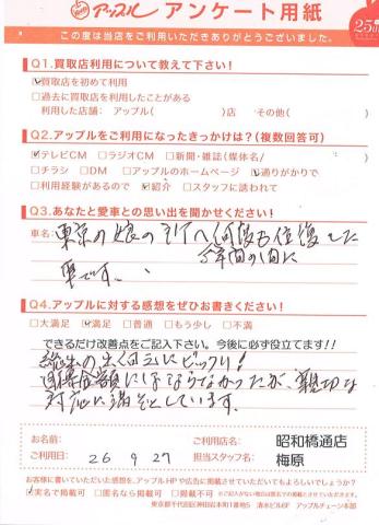 お車のご相談・ 査定だけでもOK! カンタン 入力 30秒 アップルがブランド買取始めました! お電話でも受付中! 受付時間10:00 ~ 19:00 052-363-7811 お車のご相談・ 査定だけでもOK! カンタン 入力 30秒 アップルがブランド買取始めました! お電話でも受付中! 受付時間10:00 ~ 19:00 052-363-7811 アップルがブランド買取始めました! お電話でも受付中! 受付時間10:00 ~ 19:00 052-363-7811 店舗情報 在庫車 スタッフ紹介 ブログ お客様の声 キャンペーン 無料査定 click お客様の声 ご記入日: 2014/09/27 匿名希望様 総出の出迎えにビックリ!目標金額にはならなかったが親切な対応に満足しています。 前へ 次へ お客様の声一覧を見る