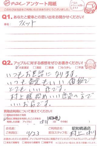 お車のご相談・ 査定だけでもOK! カンタン 入力 30秒 アップルがブランド買取始めました! お電話でも受付中! 受付時間10:00 ~ 19:00 052-363-7811 お車のご相談・ 査定だけでもOK! カンタン 入力 30秒 アップルがブランド買取始めました! お電話でも受付中! 受付時間10:00 ~ 19:00 052-363-7811 アップルがブランド買取始めました! お電話でも受付中! 受付時間10:00 ~ 19:00 052-363-7811 店舗情報 在庫車 スタッフ紹介 ブログ お客様の声 キャンペーン 無料査定 click お客様の声 ご記入日: 2014/09/23 匿名希望フィット様 いつもお世話になります。いつも査定もいい値段でとてもいい店です。村上様始めいい店員の方でいいお店です。 前へ 次へ お客様の声一覧を見る