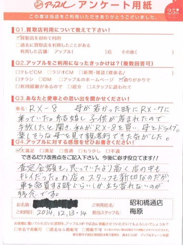お車のご相談・ 査定だけでもOK! カンタン 入力 30秒 アップルがブランド買取始めました! お電話でも受付中! 受付時間10:00 ~ 19:00 052-363-7811 お車のご相談・ 査定だけでもOK! カンタン 入力 30秒 アップルがブランド買取始めました! お電話でも受付中! 受付時間10:00 ~ 19:00 052-363-7811 アップルがブランド買取始めました! お電話でも受付中! 受付時間10:00 ~ 19:00 052-363-7811 店舗情報 在庫車 スタッフ紹介 ブログ お客様の声 キャンペーン 無料査定 click お客様の声 ご記入日: 2014/12/13 匿名希望RX-8様 査定金額も思っていたより高く店の中もキレイだった。お店のスタッフも親切なのだが、車を売買する時ぐらいしか、立ち寄れないのが残念です。 前へ 次へ お客様の声一覧を見る