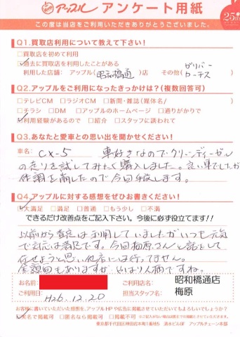 お車のご相談・ 査定だけでもOK! カンタン 入力 30秒 アップルがブランド買取始めました! お電話でも受付中! 受付時間10:00 ~ 19:00 052-363-7811 お車のご相談・ 査定だけでもOK! カンタン 入力 30秒 アップルがブランド買取始めました! お電話でも受付中! 受付時間10:00 ~ 19:00 052-363-7811 アップルがブランド買取始めました! お電話でも受付中! 受付時間10:00 ~ 19:00 052-363-7811 店舗情報 在庫車 スタッフ紹介 ブログ お客様の声 キャンペーン 無料査定 click お客様の声 ご記入日: 2014/12/20 匿名希望CX-5様 以前から査定は利用していましたが、いつも元気で対応は満足です。今回梅原さんとお話をして任せようと思い他店には行ってません。金額面もありますが、やはり人柄ですね。 前へ 次へ お客様の声一覧を見る