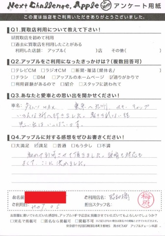 お車のご相談・ 査定だけでもOK! カンタン 入力 30秒 アップルがブランド買取始めました! お電話でも受付中! 受付時間10:00 ~ 19:00 052-363-7811 お車のご相談・ 査定だけでもOK! カンタン 入力 30秒 アップルがブランド買取始めました! お電話でも受付中! 受付時間10:00 ~ 19:00 052-363-7811 アップルがブランド買取始めました! お電話でも受付中! 受付時間10:00 ~ 19:00 052-363-7811 店舗情報 在庫車 スタッフ紹介 ブログ お客様の声 キャンペーン 無料査定 click お客様の声 ご記入日: 2015/03/05 匿名希望MAX様 初めて利用させて頂きました。説明も対応もよくてここに決めました。 前へ 次へ お客様の声一覧を見る