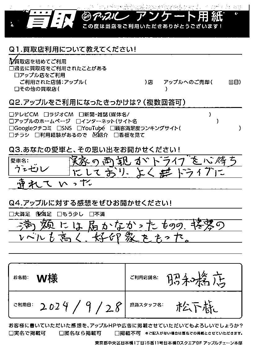 ご利用日:2024/09/28 W様
