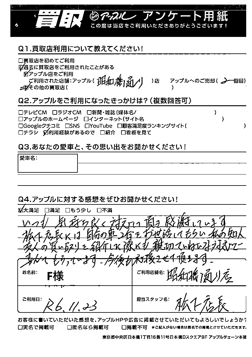 ご利用日:2024/11/23 F 様