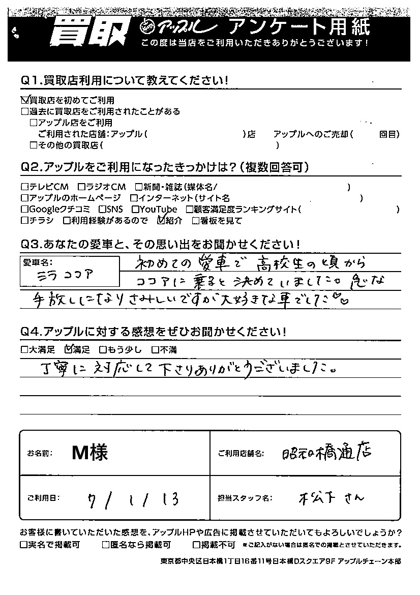 M様 車名:ダイハツ ミラココア