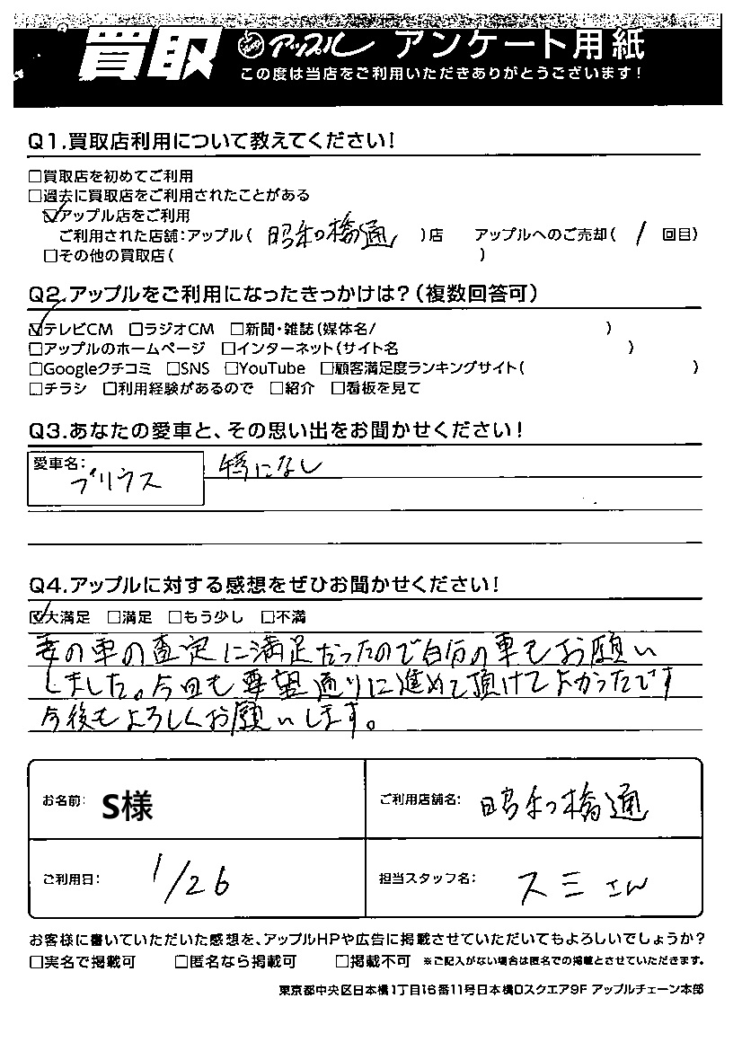 S様 車名:トヨタ プリウス(2023年3月~のPHVを含む)
