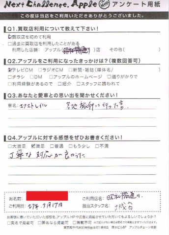 お車のご相談・ 査定だけでもOK! カンタン 入力 30秒 アップルがブランド買取始めました! お電話でも受付中! 受付時間10:00 ~ 19:00 052-363-7811 お車のご相談・ 査定だけでもOK! カンタン 入力 30秒 アップルがブランド買取始めました! お電話でも受付中! 受付時間10:00 ~ 19:00 052-363-7811 アップルがブランド買取始めました! お電話でも受付中! 受付時間10:00 ~ 19:00 052-363-7811 店舗情報 在庫車 スタッフ紹介 ブログ お客様の声 キャンペーン 無料査定 click お客様の声 ご記入日: 2015/03/17 匿名希望エクストレイル様 丁寧な対応が良かった。 前へ 次へ お客様の声一覧を見る
