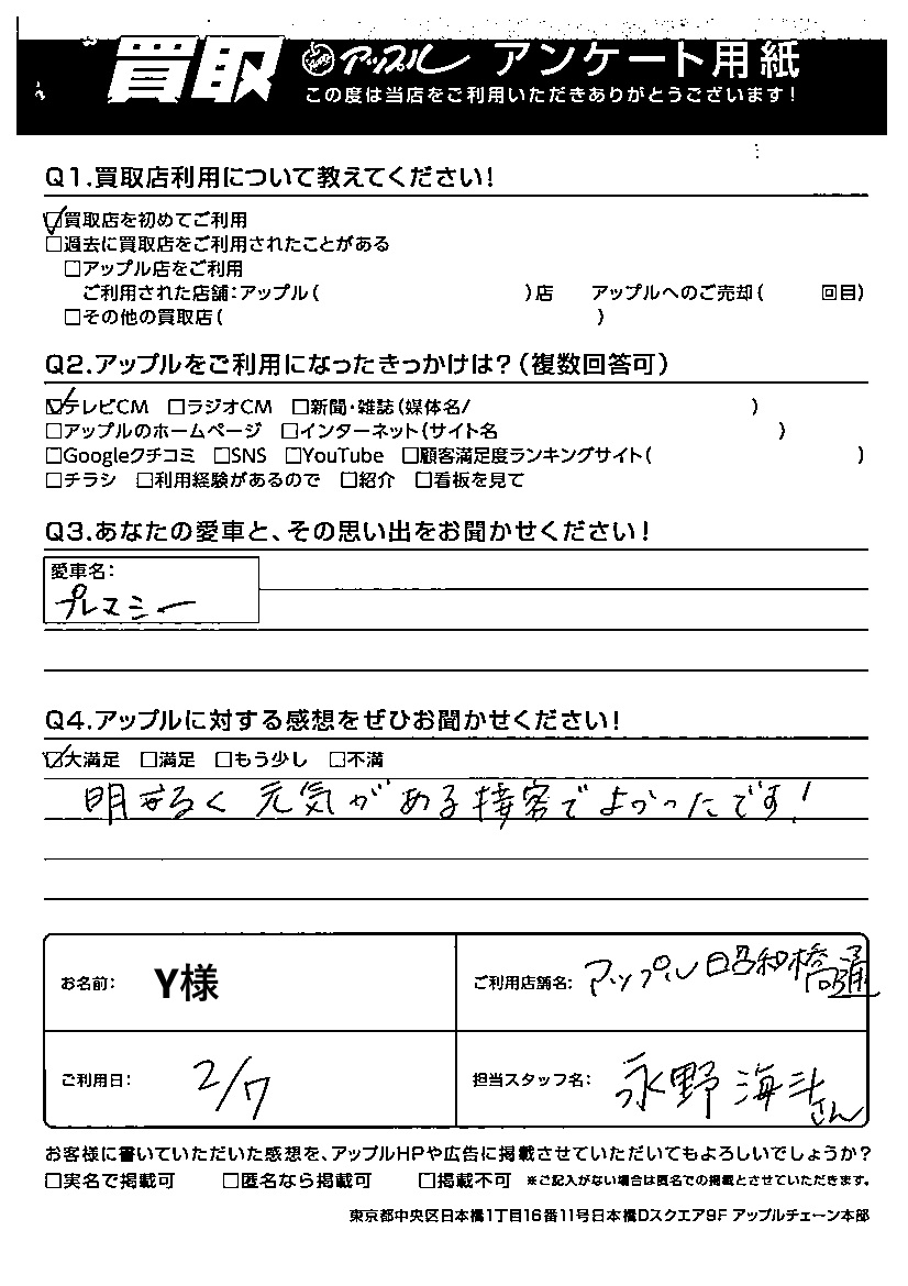 ご利用日:2025/02/07 Y 様