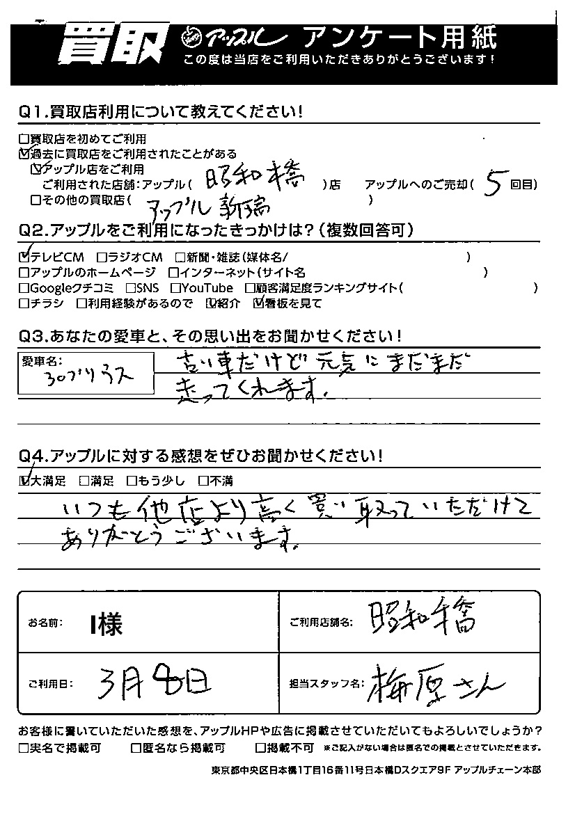 ご愛車 プリウス 担当:梅原