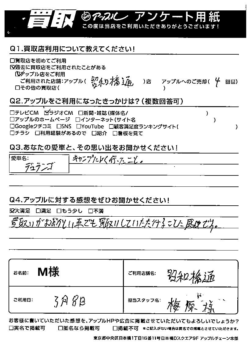 買取りがむすかしい車でも買取りしていただけることに感謝です。