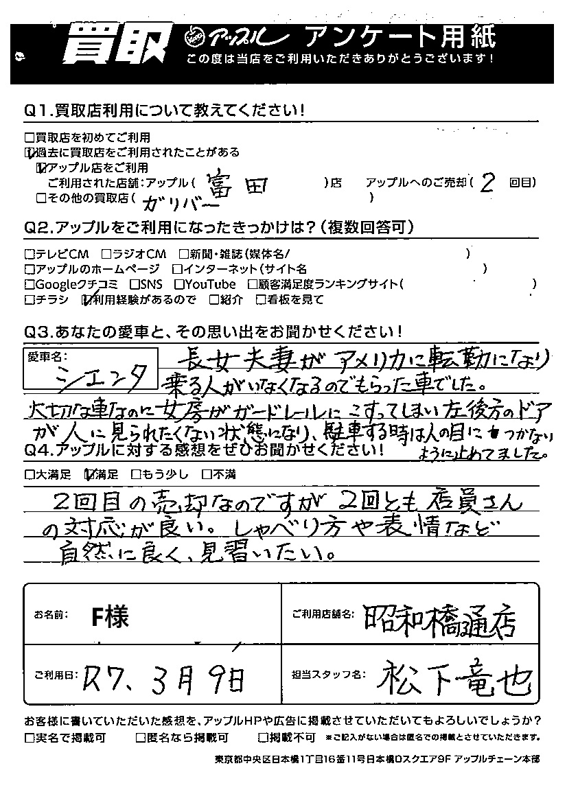2回目の売却なのですが、2回とも店員さんの対応が良い。しゃべり方や表情など自然に良く、見習