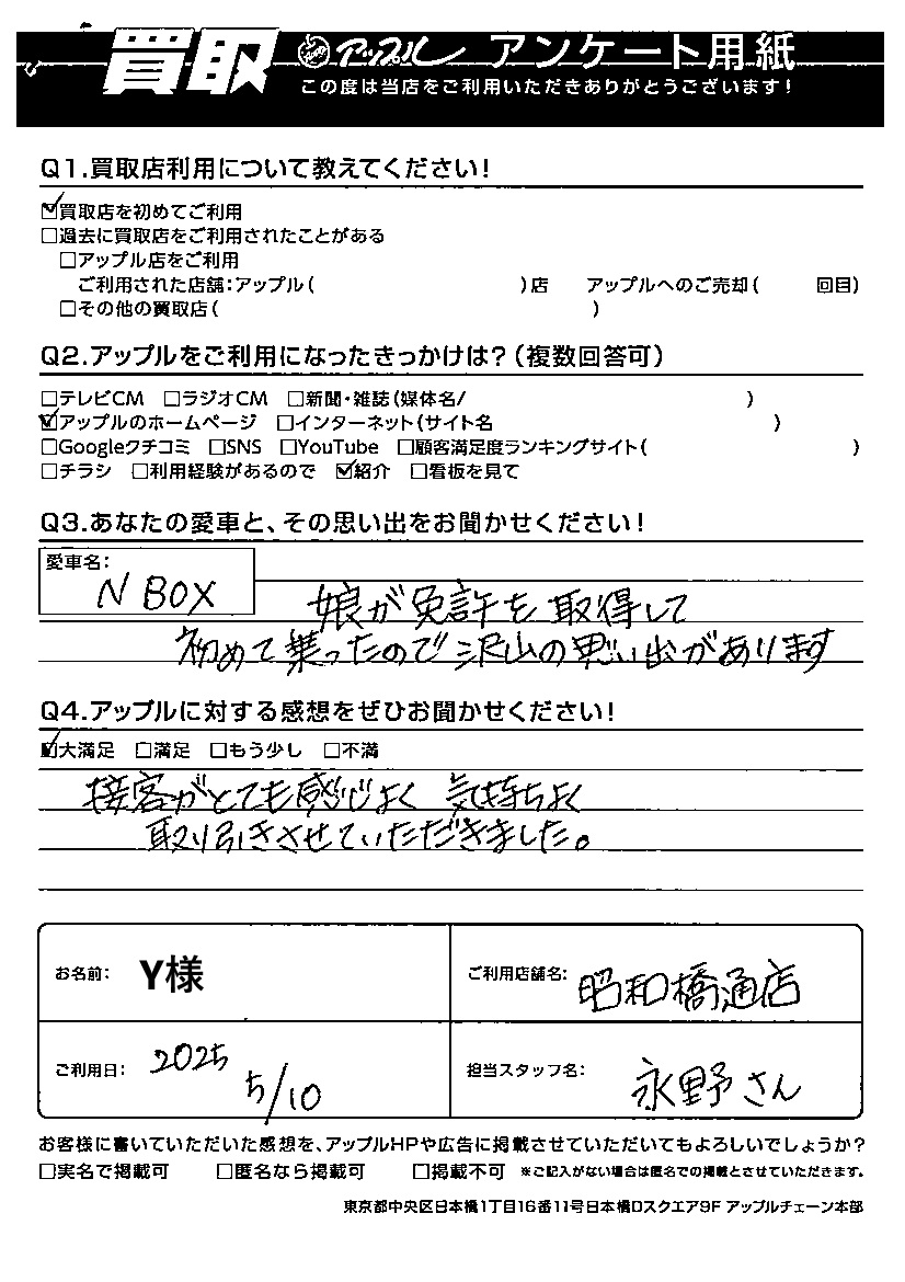 ご利用日:2025/05/10 Y 様