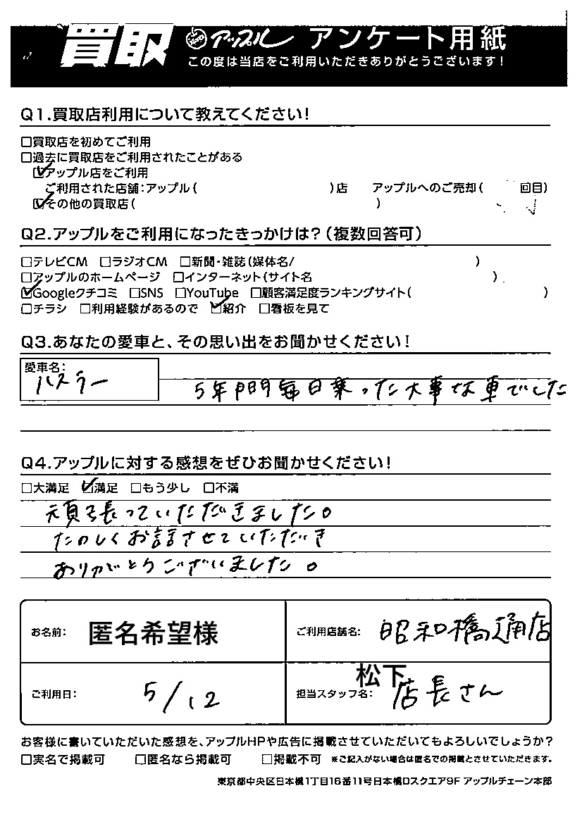 ご利用日:2025/05/12 匿名希望 様