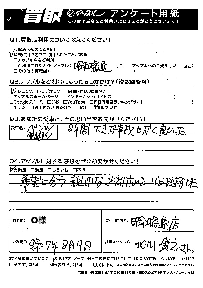 ご利用日:2025/08/09 O 様