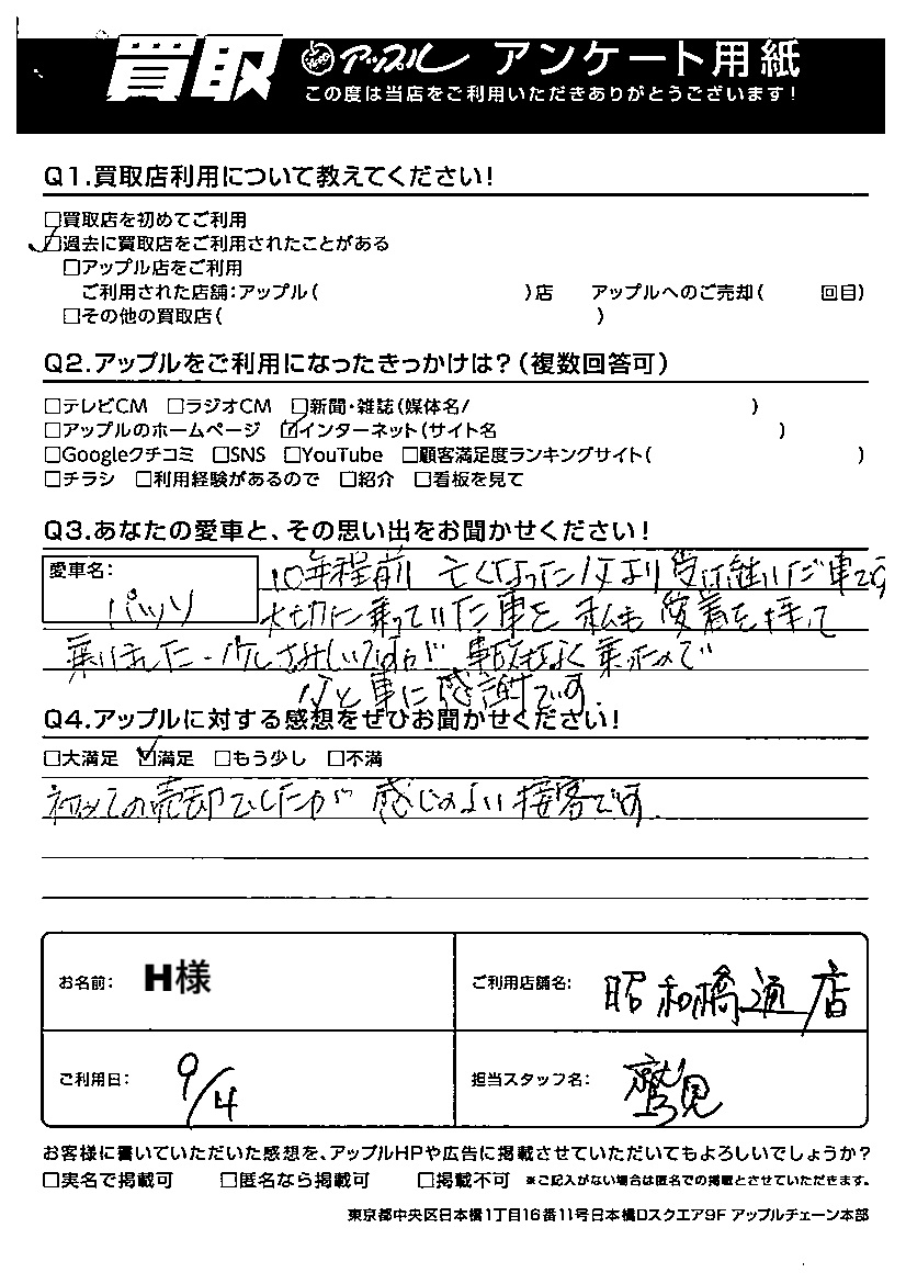 ご利用日:2025/09/04 H 様