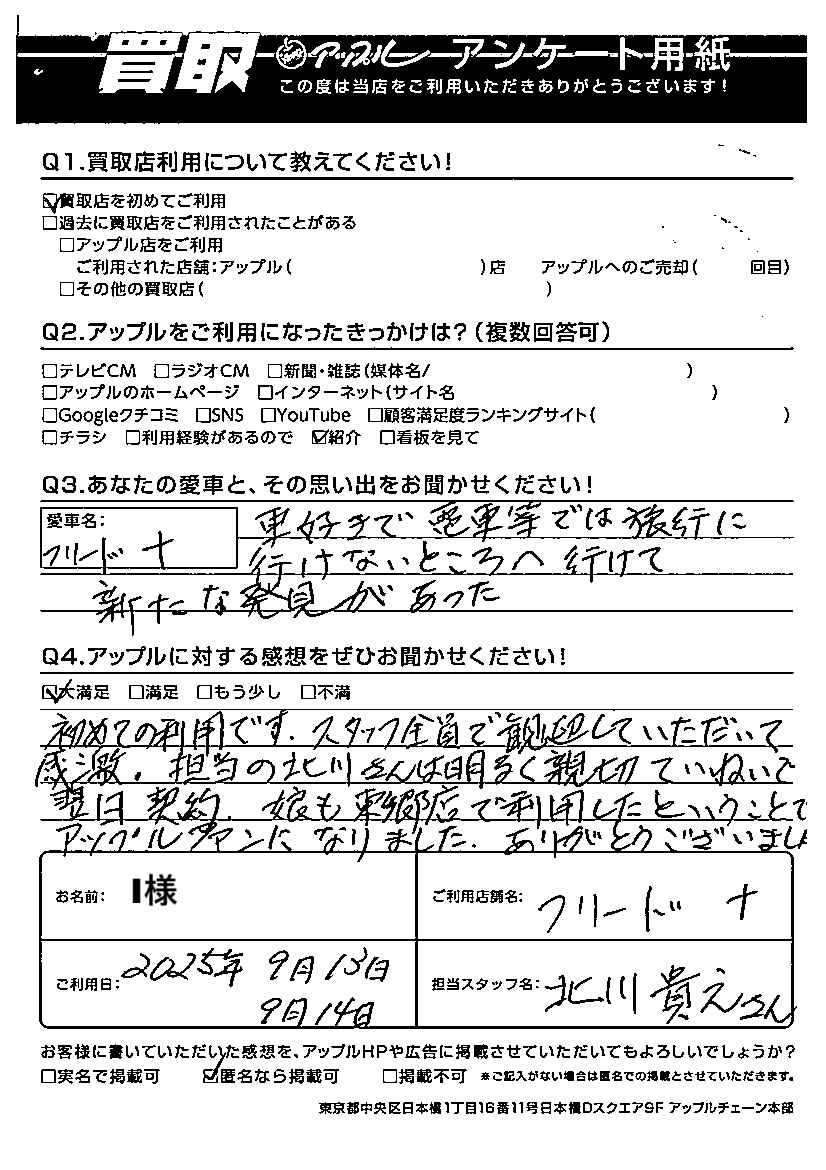 ご愛車 フリード+ 担当:北川