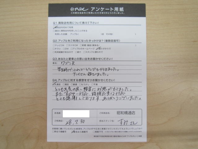 お車のご相談・ 査定だけでもOK! カンタン 入力 30秒 アップルがブランド買取始めました! お電話でも受付中! 受付時間10:00 ~ 19:00 052-363-7811 お車のご相談・ 査定だけでもOK! カンタン 入力 30秒 アップルがブランド買取始めました! お電話でも受付中! 受付時間10:00 ~ 19:00 052-363-7811 アップルがブランド買取始めました! お電話でも受付中! 受付時間10:00 ~ 19:00 052-363-7811 店舗情報 在庫車 スタッフ紹介 ブログ お客様の声 キャンペーン 無料査定 click お客様の声 ご記入日: 2016/07/30 匿名希望ワゴンR様 とても元気の良い接客に好感がもてました。またすばやい対応、臨機応変な対応とても感謝しておりますありがとうございました。 前へ 次へ お客様の声一覧を見る