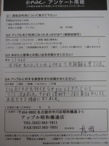 お車のご相談・ 査定だけでもOK! カンタン 入力 30秒 アップルがブランド買取始めました! お電話でも受付中! 受付時間10:00 ~ 19:00 052-363-7811 お車のご相談・ 査定だけでもOK! カンタン 入力 30秒 アップルがブランド買取始めました! お電話でも受付中! 受付時間10:00 ~ 19:00 052-363-7811 アップルがブランド買取始めました! お電話でも受付中! 受付時間10:00 ~ 19:00 052-363-7811 店舗情報 在庫車 スタッフ紹介 ブログ お客様の声 キャンペーン 無料査定 click お客様の声 ご記入日: 2017/06/06 匿名希望LS460様 とても売り手の気持ちを分かろうとして下さっていて、ココで決めました。TV(薬師寺流)の印象でも安心して来店できる理由になりました。 前へ 次へ お客様の声一覧を見る