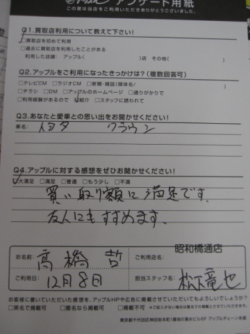 お車のご相談・ 査定だけでもOK! カンタン 入力 30秒 アップルがブランド買取始めました! お電話でも受付中! 受付時間10:00 ~ 19:00 052-363-7811 お車のご相談・ 査定だけでもOK! カンタン 入力 30秒 アップルがブランド買取始めました! お電話でも受付中! 受付時間10:00 ~ 19:00 052-363-7811 アップルがブランド買取始めました! お電話でも受付中! 受付時間10:00 ~ 19:00 052-363-7811 店舗情報 在庫車 スタッフ紹介 ブログ お客様の声 キャンペーン 無料査定 click お客様の声 ご記入日: 2017/06/06 匿名希望クラウン様 買い取り額に満足です。友人にもすすめます。 前へ 次へ お客様の声一覧を見る