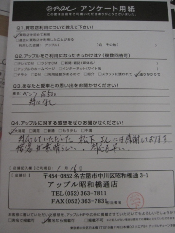 お車のご相談・ 査定だけでもOK! カンタン 入力 30秒 アップルがブランド買取始めました! お電話でも受付中! 受付時間10:00 ~ 19:00 052-363-7811 お車のご相談・ 査定だけでもOK! カンタン 入力 30秒 アップルがブランド買取始めました! お電話でも受付中! 受付時間10:00 ~ 19:00 052-363-7811 アップルがブランド買取始めました! お電話でも受付中! 受付時間10:00 ~ 19:00 052-363-7811 店舗情報 在庫車 スタッフ紹介 ブログ お客様の声 キャンペーン 無料査定 click お客様の声 ご記入日: 2017/06/06 匿名希望ベンツS様 対応していただいた松下さんには感謝しております。接客が素晴らしい。対応も早い。 前へ 次へ お客様の声一覧を見る