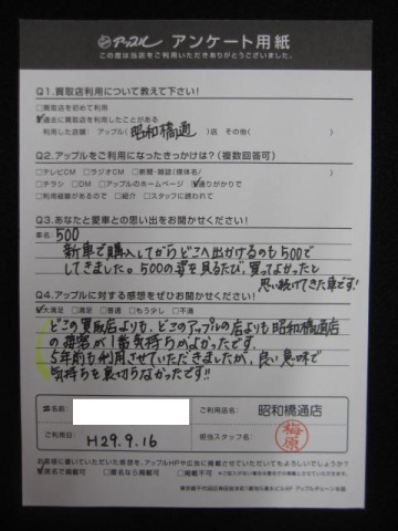 お車のご相談・ 査定だけでもOK! カンタン 入力 30秒 アップルがブランド買取始めました! お電話でも受付中! 受付時間10:00 ~ 19:00 052-363-7811 お車のご相談・ 査定だけでもOK! カンタン 入力 30秒 アップルがブランド買取始めました! お電話でも受付中! 受付時間10:00 ~ 19:00 052-363-7811 アップルがブランド買取始めました! お電話でも受付中! 受付時間10:00 ~ 19:00 052-363-7811 店舗情報 在庫車 スタッフ紹介 ブログ お客様の声 キャンペーン 無料査定 click お客様の声 ご記入日: 2017/09/16 フィアット500匿名希望様 どこの買取店よりも、どこのアップルの店よりも昭和橋通店の接客が1番気持ちがよかったです。5年前も利用させていただきましたが、良い意味で気持ちを裏切らなかったです!! 前へ 次へ お客様の声一覧を見る